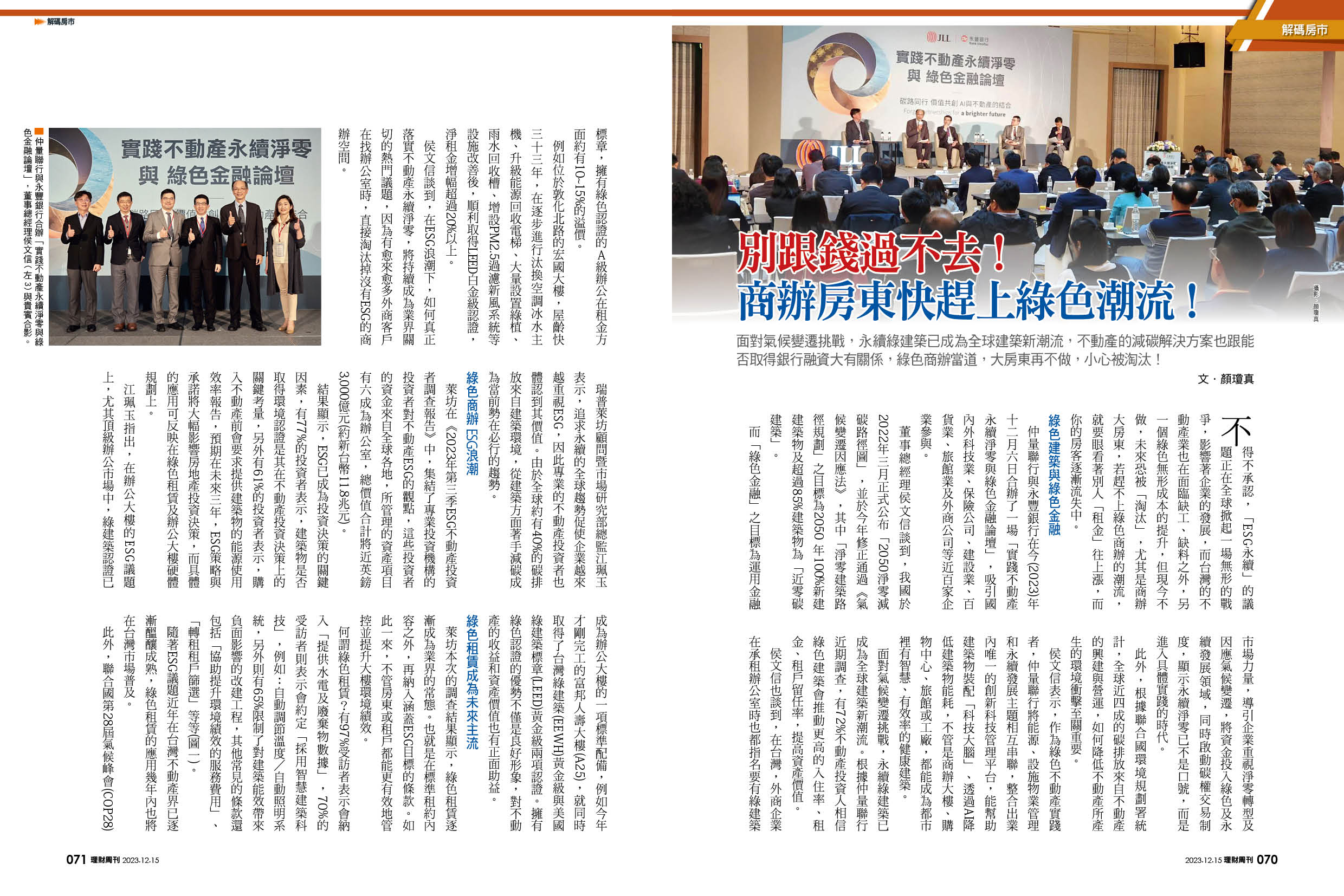 不得不承認,「ESG永續」的議題正在全球掀起一場無形的戰爭,影響著企業的發展,而台灣的不動產業也在面臨缺工、缺料之外,另一個綠色無形成本的提升,但現今不做,未來恐被「淘汰」,尤其是商辦大房東,若趕不上綠色商辦的潮流,就要眼看著別人「租金」往上漲,而你的房客逐漸流失中。