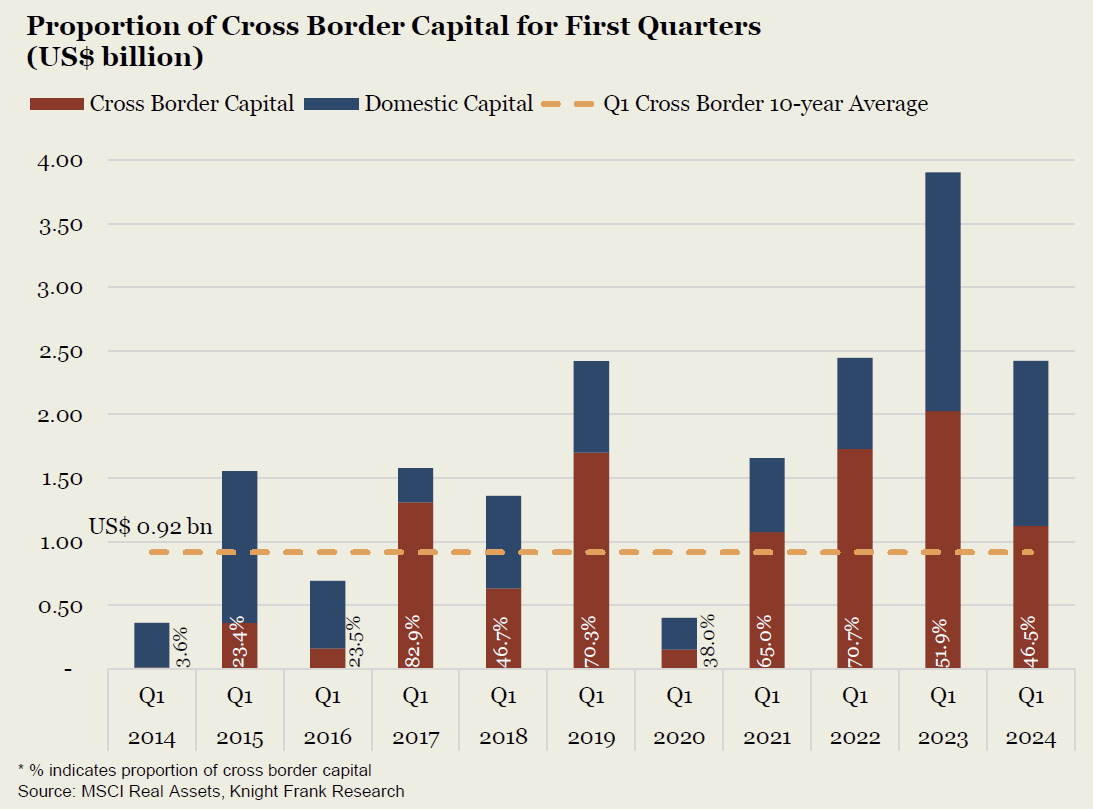 • 第一季交易金額達 9.06 億美元,專注於酒店資產的機構投資者佔多數,部分交易如收購 Hotel G Singapore 展現資產增值潛力。