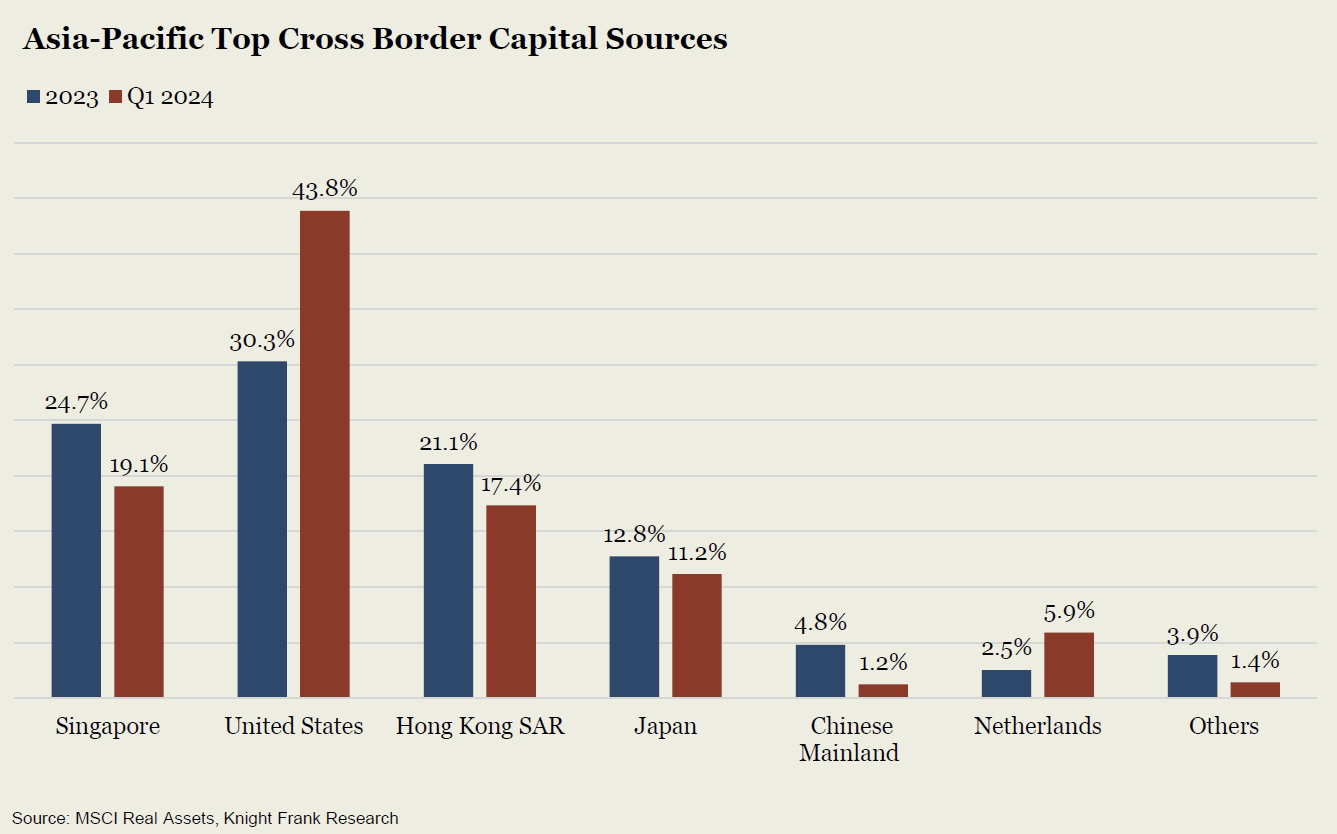 本季亞太地區資本市場投資下降,但精明的美國投資者看到機會並增加投資活動。日本和韓國的辦公室市場蓬勃發展,而具備韌性的集合住宅市場持續成為最熱門的資產類別之一。